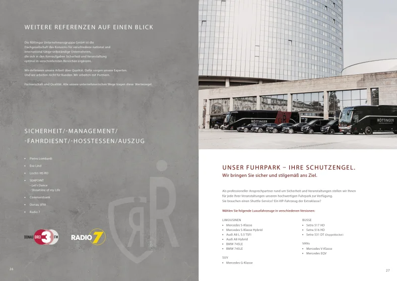 Röttinger hat sich in der Veranstaltungs- und Unterhaltungsindustrie längst einen Namen gemacht. Wenn’s um Sicherheitsdienste und Fahrservice mit Premiumfaktor geht, ist Röttinger für viele VIPs, Unternehmer, Stars und Sternchen längst als DER Partner.